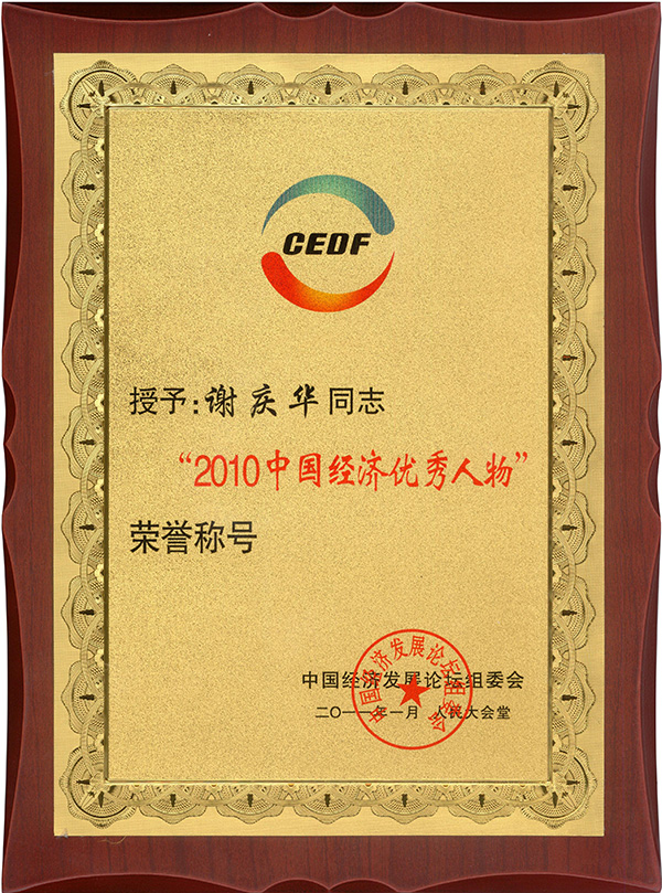 謝慶華總經(jīng)理榮獲“2010中國經(jīng)濟(jì)優(yōu)秀人物”稱號