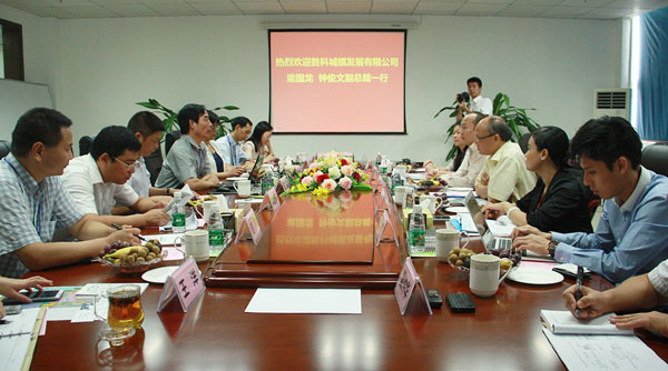 2014年8月12日,勝科城鎮(zhèn)發(fā)展公司副總裁梁國龍、鐘俊文在廣西自治區(qū)商務(wù)廳副廳長韋朝暉、北海市副市長石昆的陪同下赴中國電子北海產(chǎn)業(yè)園,就以北部灣智慧生態(tài)電子城項目為基礎(chǔ),雙方進行戰(zhàn)略合作有關(guān)事宜進行實地考察??疾炱陂g,自治區(qū)黨委常委、北海市委王小東書記進行了親切會見,北海市政府林山青常務(wù)副市長帶隊與考察團進行了座談。